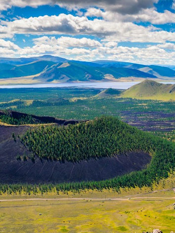 Visitors climb the volcano on stairs and trails, and upon reaching the top, walk along the volcano rim with outstanding views of surrounding areas; a small village can be seen from the volcano as well as a bird’s eye view of Terhkiin Tsagaan Lake.